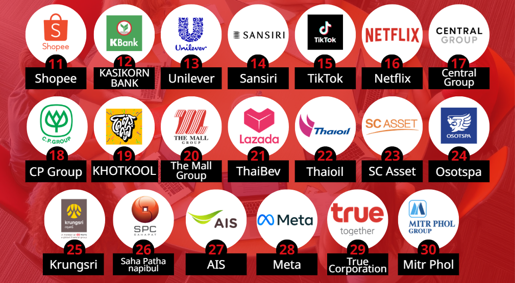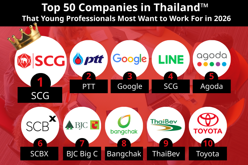 Overall, the rankings reflect strong confidence in large Thai organizations that are rapidly transforming through technology, alongside global tech companies that continue to uphold flexible, modern workplace cultures.