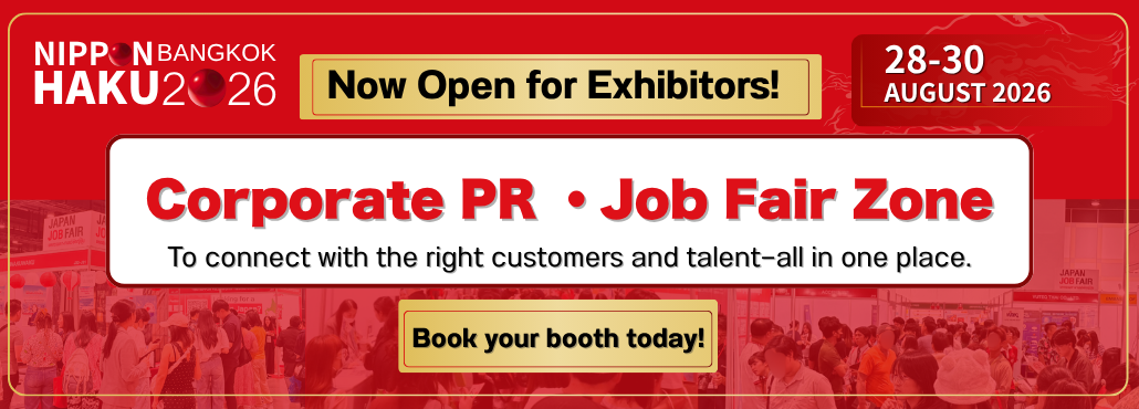 Nippon Haku Bangkok 2026 is the largest Japan expo in Thailand—bringing together customers, brands, and high-quality talent in one place. It’s the perfect platform for organizations looking to build brand awareness, expand business, and recruit talent all at once.