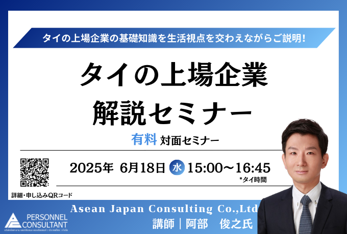 初めてタイに赴任された駐在員の方、そして新規に幹部になられた方、タイの企業に関して知識がない方にもご理解いただけるように、基礎からお伝えします。