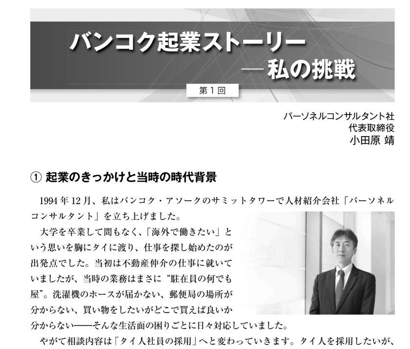 掲載記事: 連載「バンコク起業ストーリー —私の挑戦(第1回)」