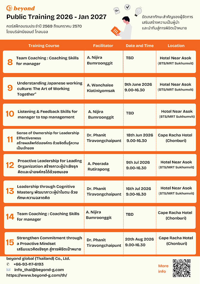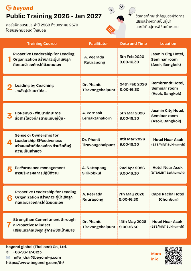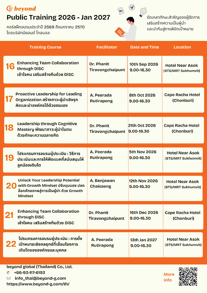[ข่าวประชาสัมพันธ์] – หลักสูตรอบรมพัฒนาศักยภาพผู้นำและบุคลากร ปี 2569–2570 โดย beyond global (Thailand) Co.,Ltd.