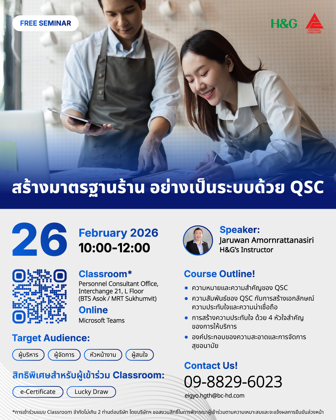 [อบรมฟรี] : สร้างมาตรฐานร้านอย่างเป็นระบบด้วย QSC (Quality, Service, Cleanliness)