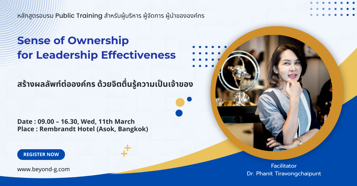 📢📢 [ข่าวประชาสัมพันธ์] – Public training สำหรับผู้จัดการชาวไทย : หลักสูตร Sense of Ownership for Leadership Effectiveness โดย Beyond global