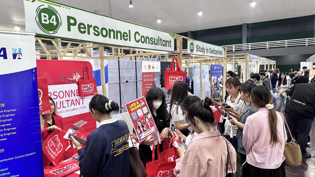 บูทของ บริษัทเพอร์ซันแนล คอนซัลแตนท์ฯ ได้รับความสนใจจากน้อง ๆ เป็นจำนวนมาก โดยมีผู้เข้ามาสอบถามข้อมูลตำแหน่งงานต่าง ๆ พร้อมทั้งให้ความสนใจสมัครงานและฝากประวัติไว้กับทางบริษัท