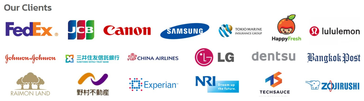 สถานเอกอัครราชทูตญี่ปุ่นประจำประเทศไทย, ธนาคารกสิกรไทย, FEDEX, Lululemon, JCB, Canon, Samsung, Tokyo Marine, Johnson & Johnson, Nomura Real Estate และอื่นๆ