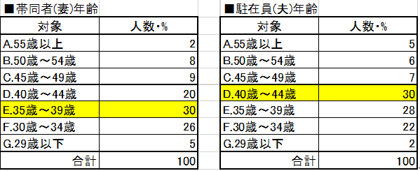 ※その夫、配偶者である駐在員男性の年齢は、26~61歳(平均39.75歳)