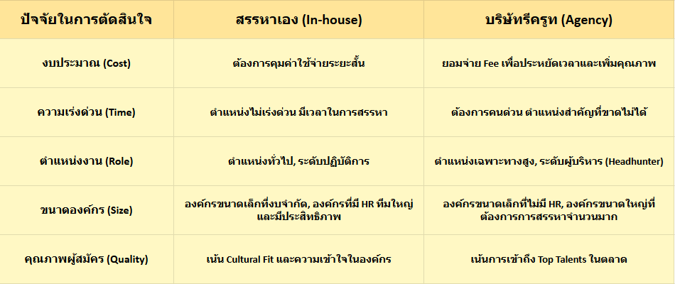 เมื่อไรที่ควรเลือกใช้บริการบริษัทรีครูทหรือสรรหาพนักงานเอง