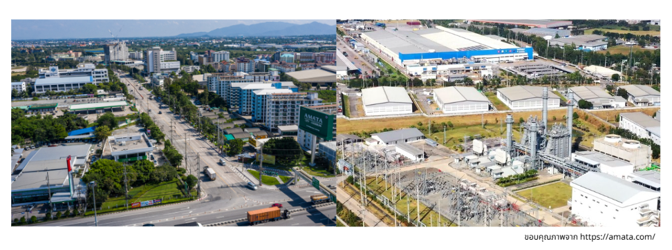 1.นิคมอุตสาหกรรมอมตะซิตี้ ชลบุรี นิคมอุตสาหกรรมอมตะซิตี้ ชลบุรี เป็นหนึ่งในนิคมอุตสาหกรรมที่ใหญ่ที่สุดของประเทศไทย ตั้งอยู่ในจังหวัดชลบุรี ใกล้กรุงเทพฯ และท่าเรือแหลมฉบัง มีพื้นที่ 43 ตารางกิโลเมตร มีแรงงานในพื้นที่มากกว่า 200,000 คน ทำให้สะดวกต่อการขนส่งสินค้าและวัตถุดิบ อุตสาหกรรมหลักที่ตั้งอยู่ในนิคมนี้ ได้แก่ อุตสาหกรรมยานยนต์ อิเล็กทรอนิกส์ และเครื่องใช้ไฟฟ้า