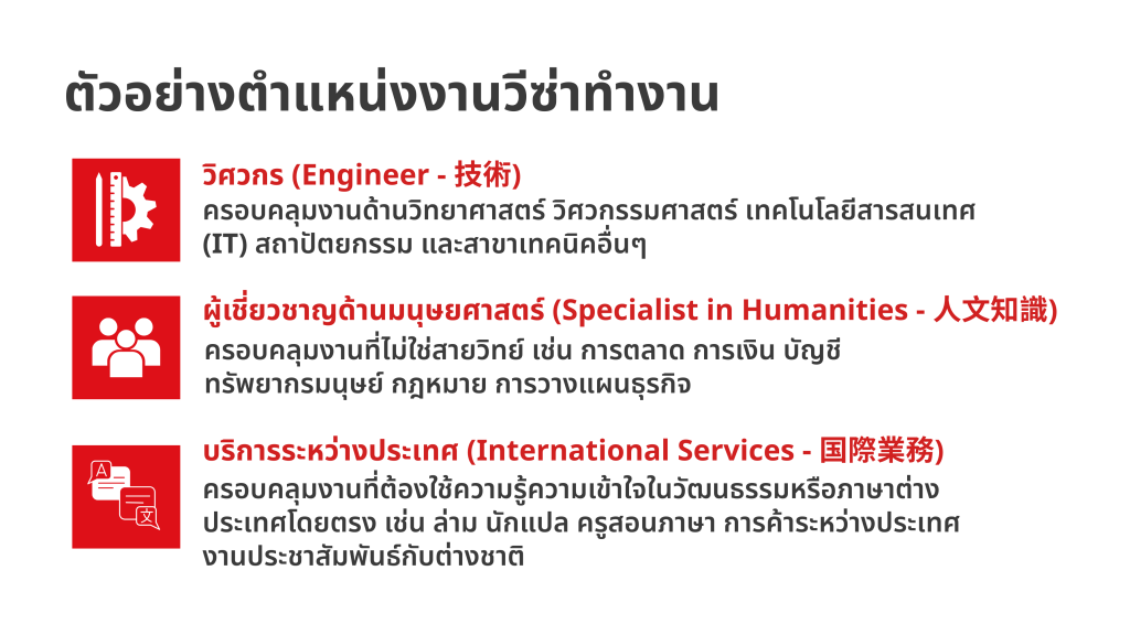 Source : 技術・人文知識・国際業務ビザ วีซ่าทำงานด้านวิศวกรรม มนุษยศาสตร์ และงานระหว่างประเทศ
