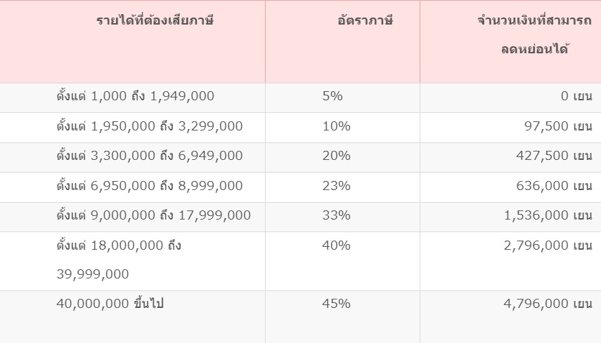Source : วิธีคำนวณภาษีเงินได้บุคคลธรรมดาในญี่ปุ่น