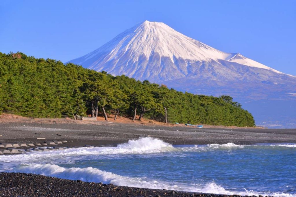“ป่าสนมิโฮะโนะมัตสึบาระ” คือแนวชายหาดยาวประมาณ 5–7 กิโลเมตร ถูกโอบล้อมด้วยต้นสนกว่า 30,000–54,000 ต้นตลอดแนว ตั้งอยู่ในย่านชิมิซุ เมืองริมอ่าวซุรุกะ (Suruga Bay) ในจังหวัดชิซุโอกะ จุดเด่นของที่นี่คือ “ทัศนียภาพอันงดงาม สามารถมองเห็นภูเขาไฟฟูจิผ่านป่าสนริมชายฝั่ง” ที่หลายคนอาจรู้จักจากภาพวาดอุคิโยเอะ (Ukiyo-e) และบริเวณใกล้กึ่งกลางของป่าสนแห่งนี้มียังต้นสน “Hagoromo no Matsu” จากตำนานพื้นบ้านญี่ปุ่นโบราณอย่าง “ตำนานชุดขนนกสวรรค์ (Hagoromo Legend)