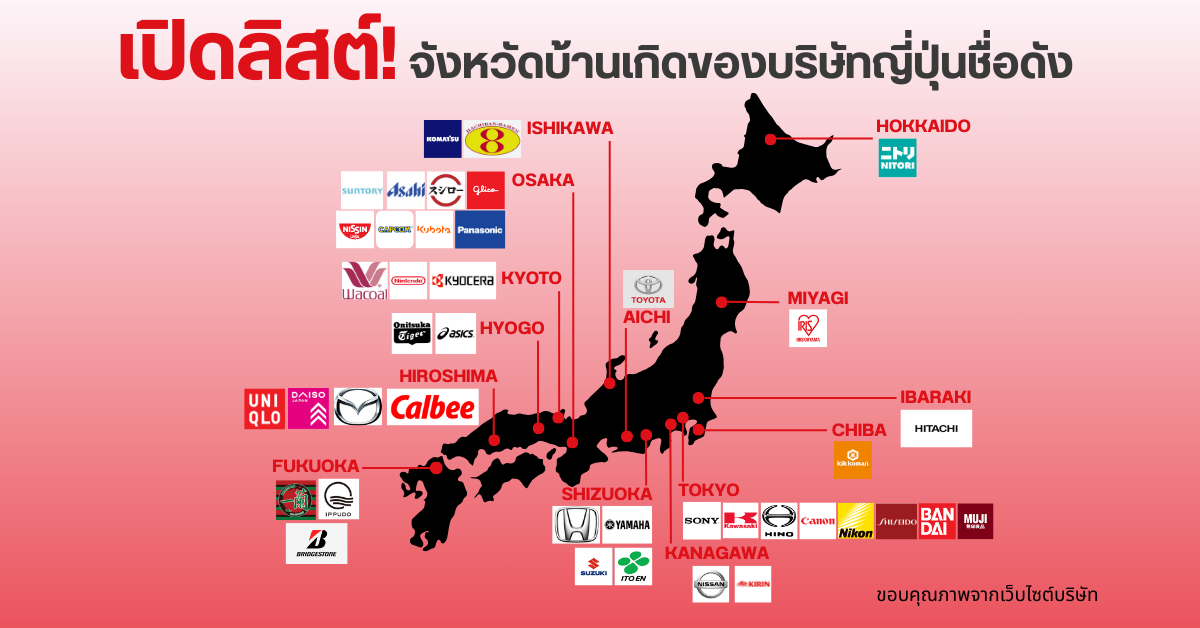 เปิดลิสต์! จังหวัดบ้านเกิดของบริษัทญี่ปุ่นชื่อดัง