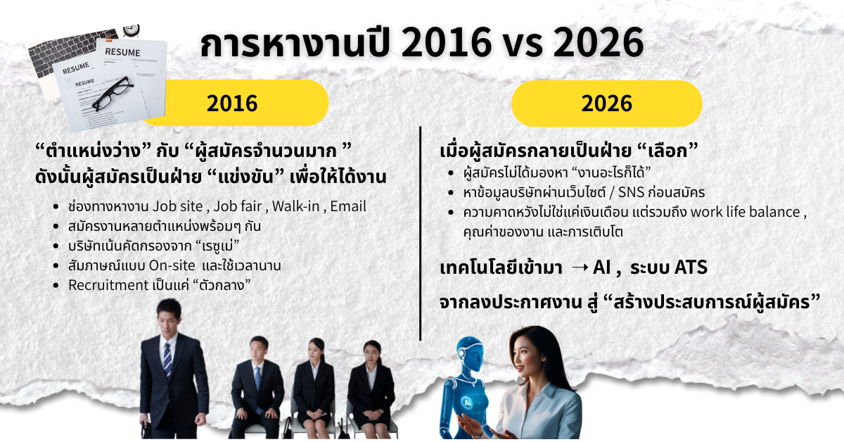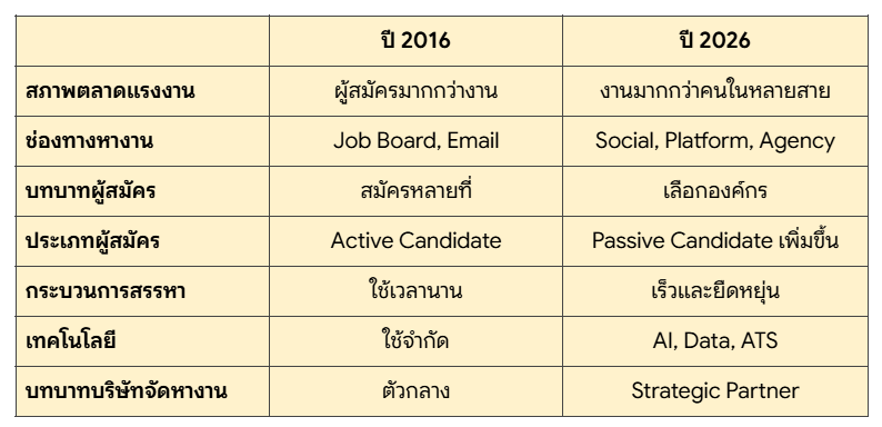 **ตารางเปรียบเทียบการหางาน/รับสมัครงาน ปี2016 vs 2026