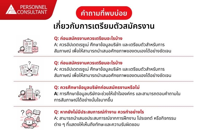 คำถามที่พบบ่อยเกี่ยวกับการเตรียมตัวสมัครงาน